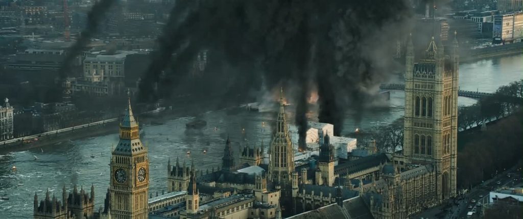 背景:伦敦成为恐怖袭击目标,各国领导人齐聚的葬礼引发连环爆炸,大本钟、国会大厦等标志性建筑被毁。